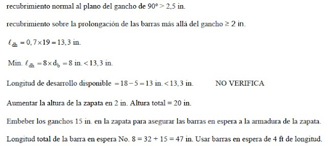 b. Para el desarrollo en la zapata, las barras en espera No. 8 deben tener una longitud igual a una longitud de